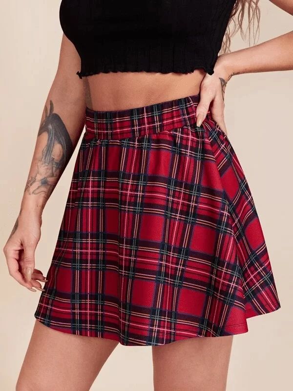 Saia estilo colegial com estampa xadrex
